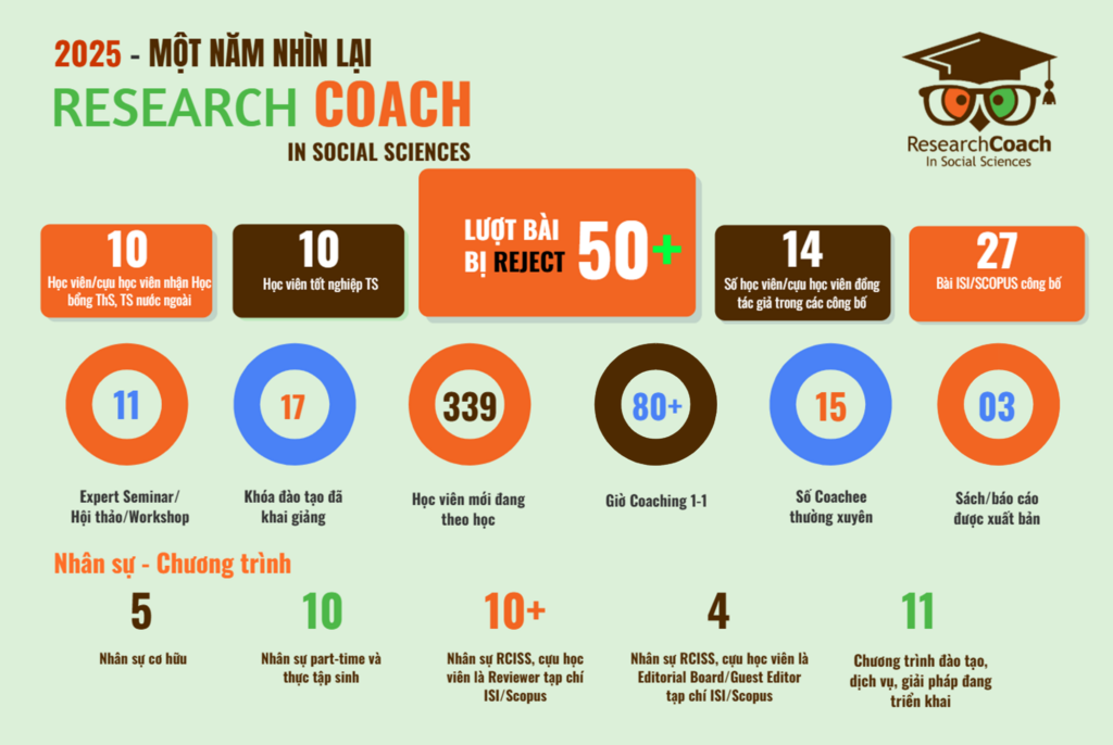 2025 qua đi, Research Coach có 339 học viên đang theo học, 17 khóa đào tạo, 11 hội thảo, hơn 80 giờ coaching 1–1. Con số không nhiều, nhưng cũng đáng để chúng ta trân trọng và nhìn lại.
